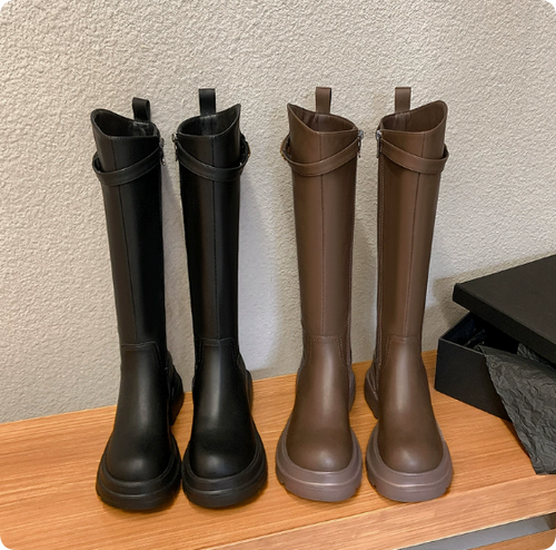 Genuine Leather Women's Knee-High Boots — Mid-Calf, Snug-Fit Stretch Boots with Chunky Soles and Round Toes — Stylish High Boots for Autumn/Winter